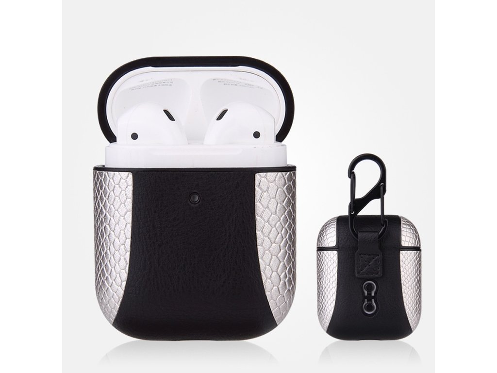 Dvoubarevný kožený obal na Airpods 1/2 - Černo/stříbrný