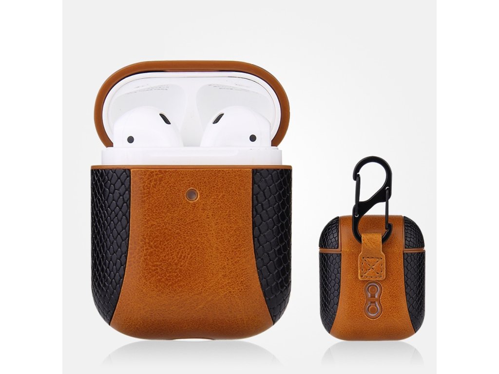 Dvoubarevný kožený obal na Airpods 1/2 -Hnědo/černý