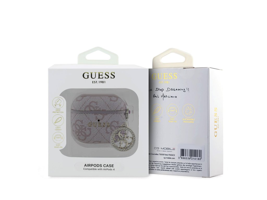 Guess 4G Script PC/PU Charm Pouzdro pro AirPods 4 - Pink