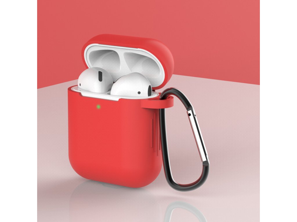 Jednobarevný obal s karabinou na Airpods 1/2 - Červený