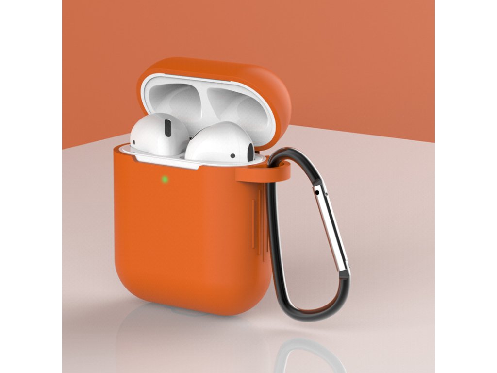 Jednobarevný obal s karabinou na Airpods 1/2 - Tmavě oranžový