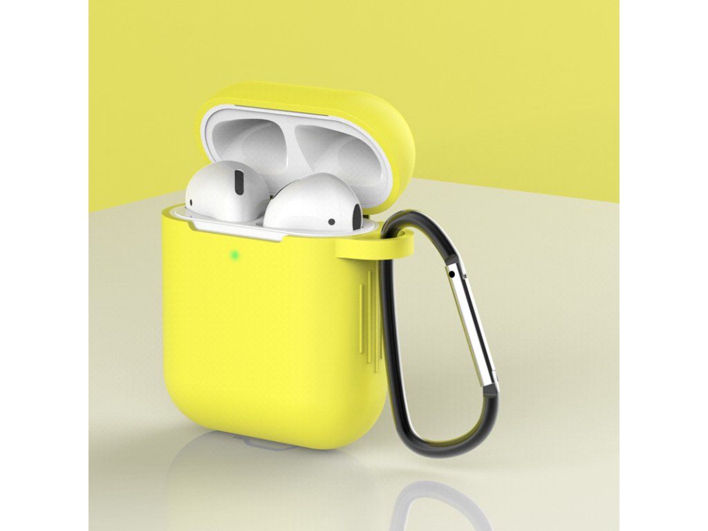 Jednobarevný obal s karabinou na Airpods 1/2 - Žlutý