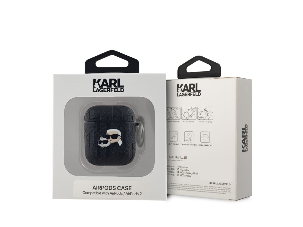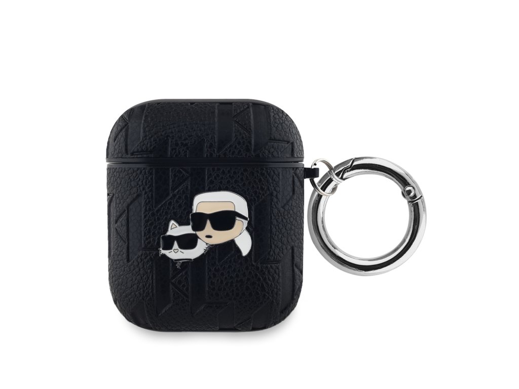 Karl Lagerfeld PU Embossed Karl and Choupette Heads Pouzdro pro AirPods 1/2 - Black