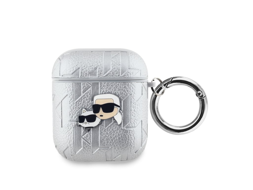 Karl Lagerfeld PU Embossed Karl and Choupette Heads Pouzdro pro AirPods 1/2 - Silver