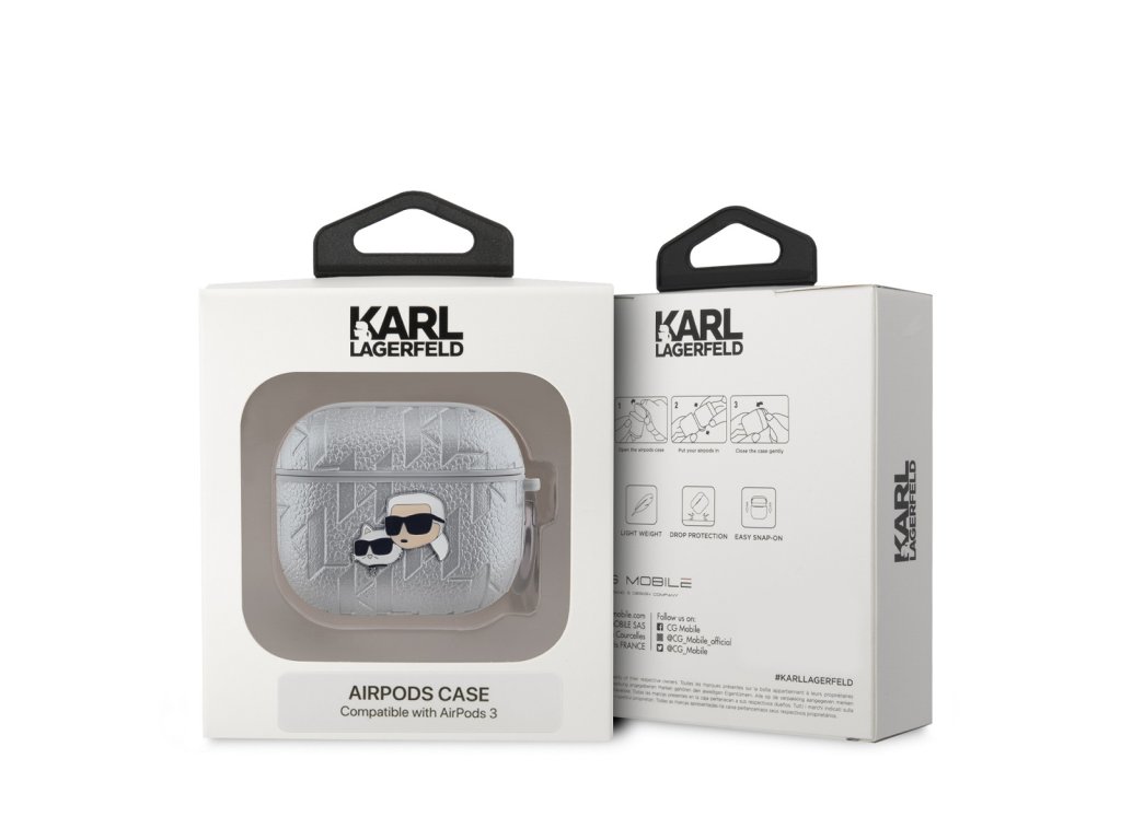 Karl Lagerfeld PU Embossed Karl and Choupette Heads Pouzdro pro AirPods 3 - Silver