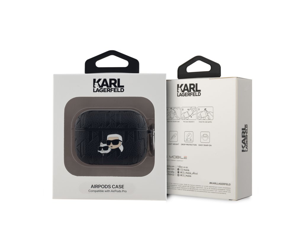 Karl Lagerfeld PU Embossed Karl and Choupette Heads Pouzdro pro AirPods Pro - Black