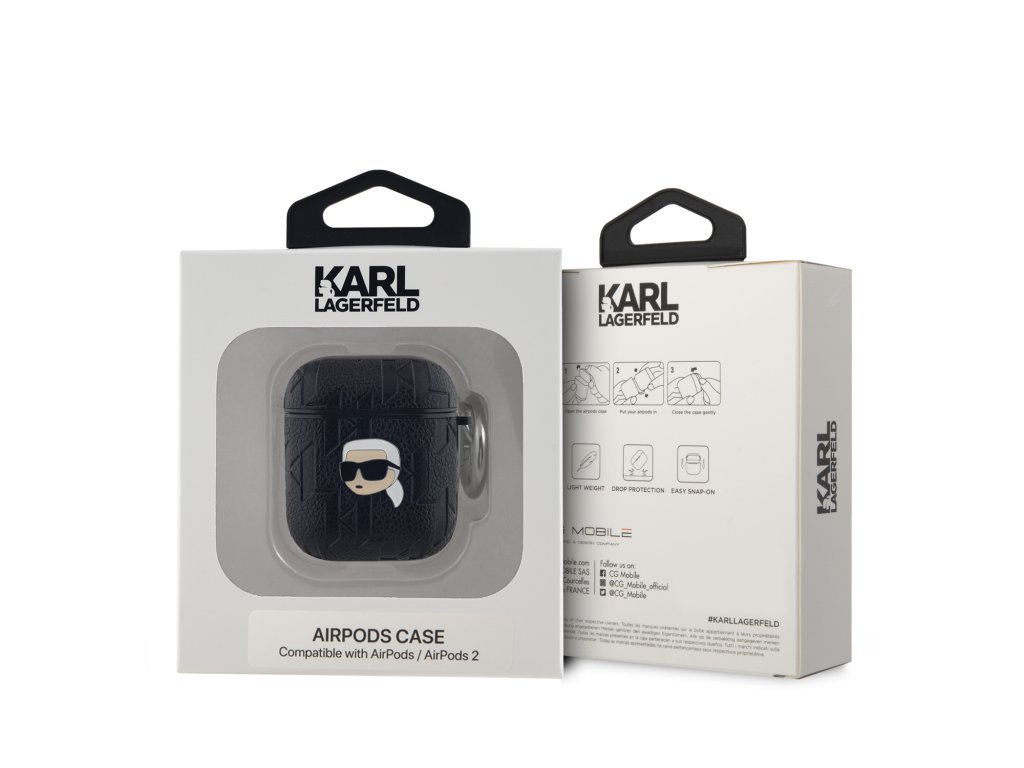 Karl Lagerfeld PU Embossed Karl Head Pouzdro pro AirPods 1/2 - Black