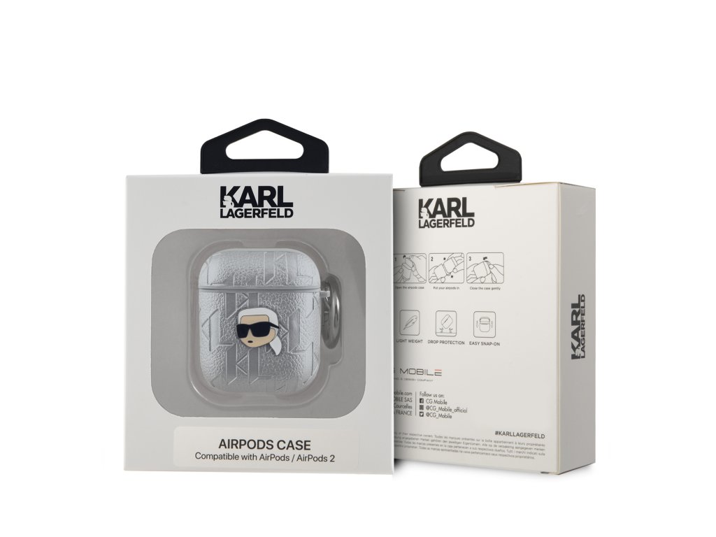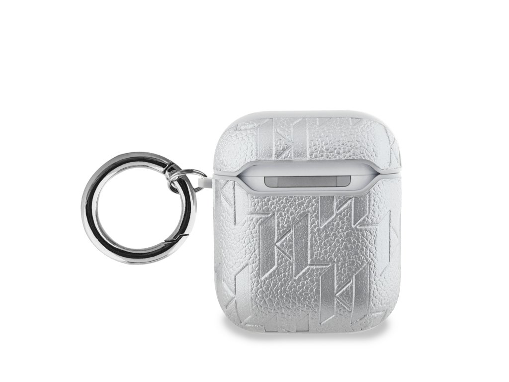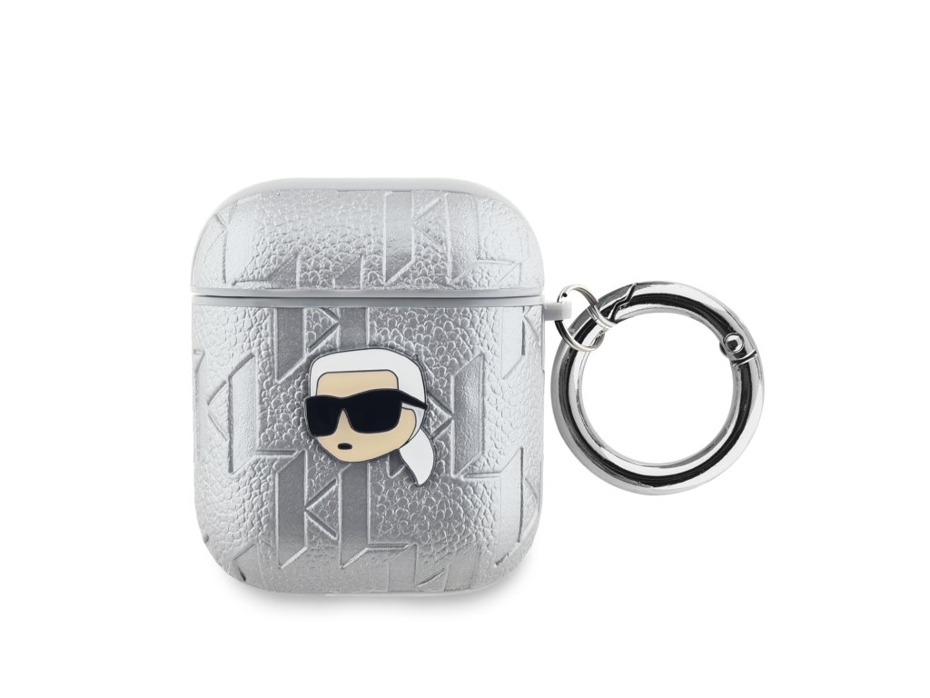 Karl Lagerfeld PU Embossed Karl Head Pouzdro pro AirPods 1/2 - Silver