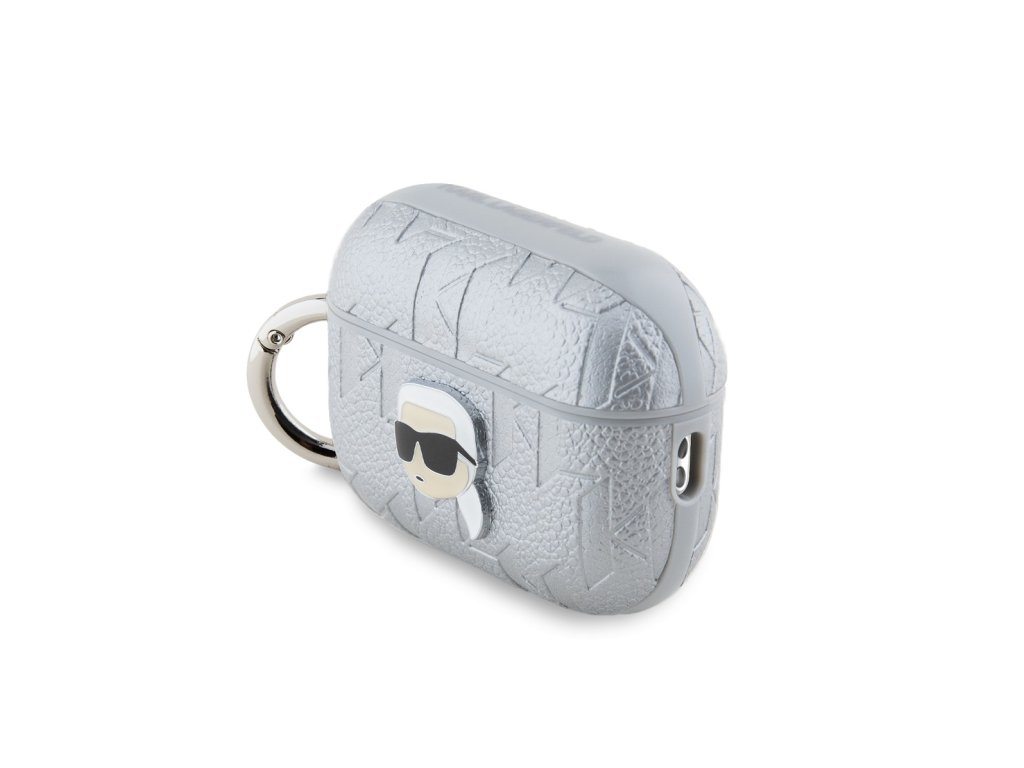 Karl Lagerfeld PU Embossed Karl Head Pouzdro pro AirPods Pro 2 - Silver