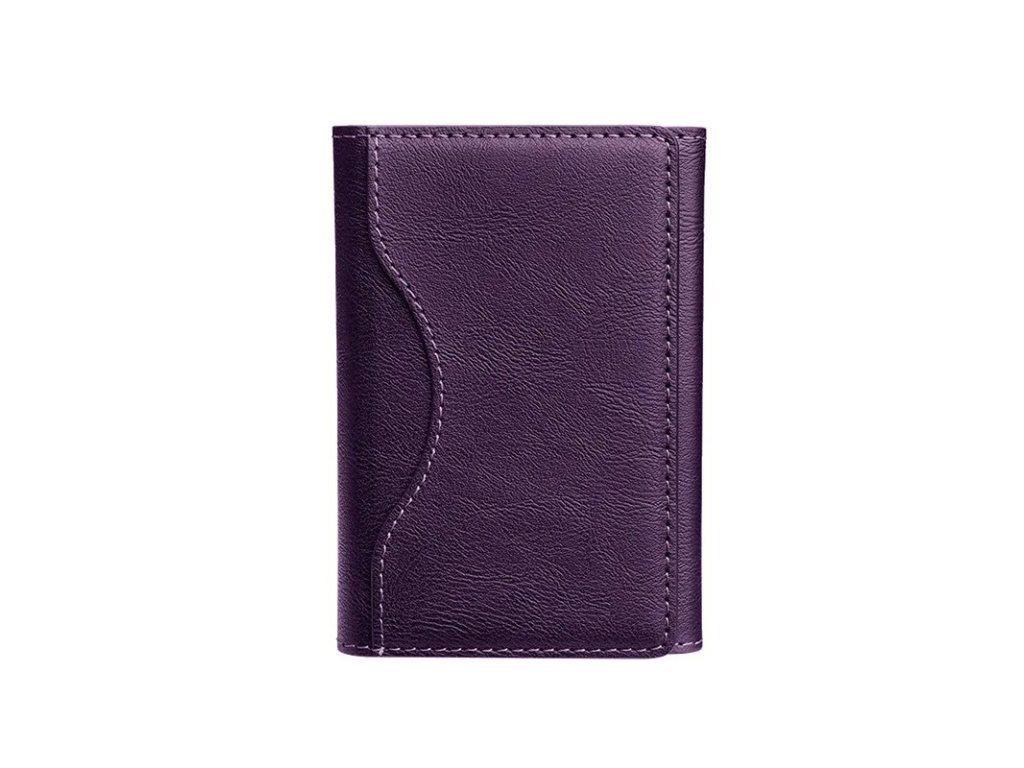 Kožená, víceúčelová, rozkládací MagSafe peněženka - Vínová