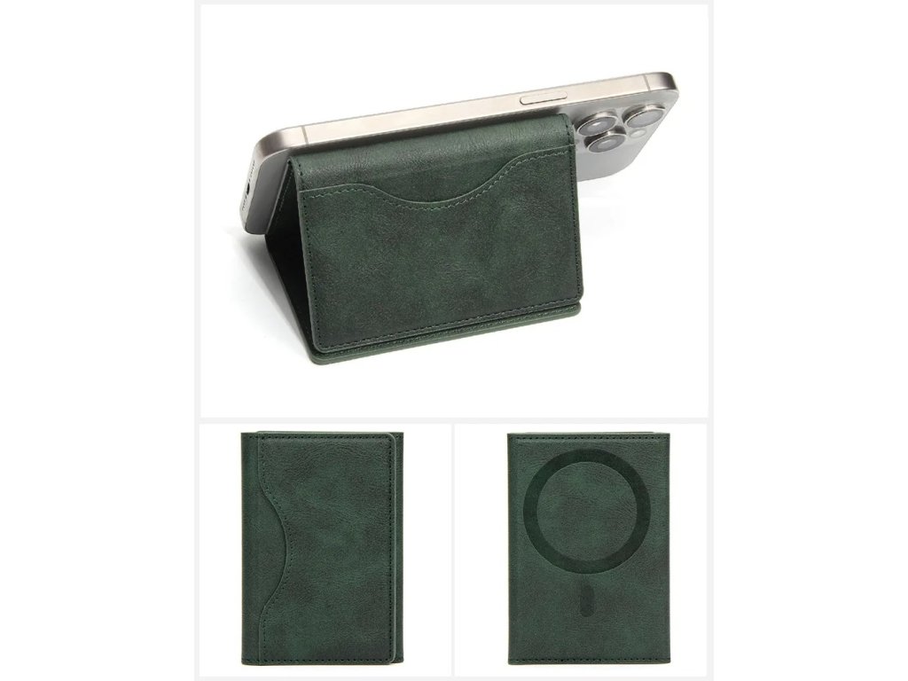 Kožená, víceúčelová, rozkládací MagSafe peněženka - Zelená