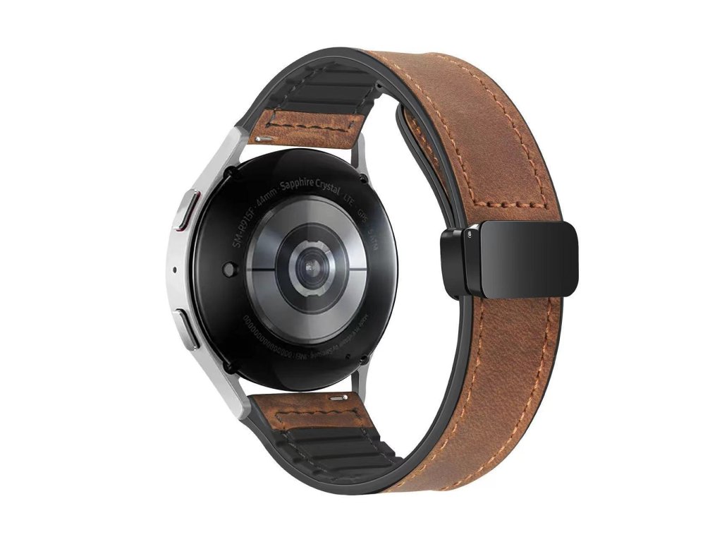 Kožený RUBBER rychloupínací řemínek představuje elegantní a praktickou kombinaci kůže a silikonu. Na pohled jemný, přední část je tvořena kvalitní kůží, zatímco spodní silikonová vrstva zajišťuje komfort při nošení. Zapínání je inovativní - spojuje magnetický mechanismus s motýlkovou přezkou, což zaručuje stabilní uchycení a snadnou manipulaci. Tento řemínek je nejen stylový, ale také velmi funkční, s možností rychlého nastavení délky pro perfektní přizpůsobení každému zápěstí.