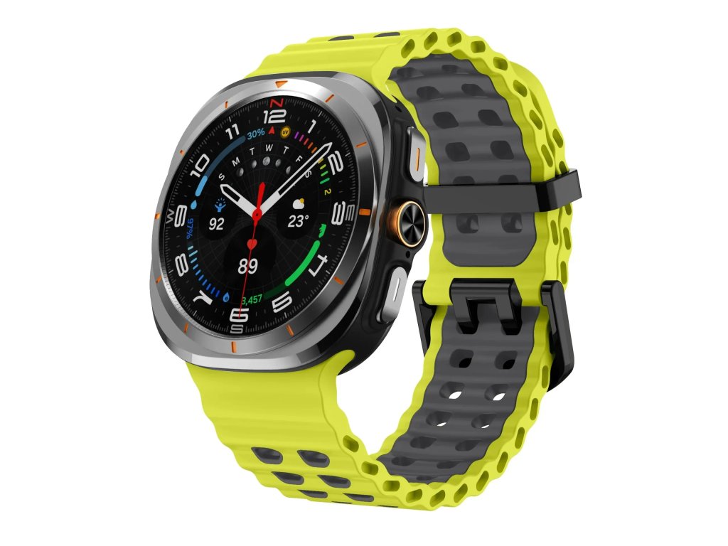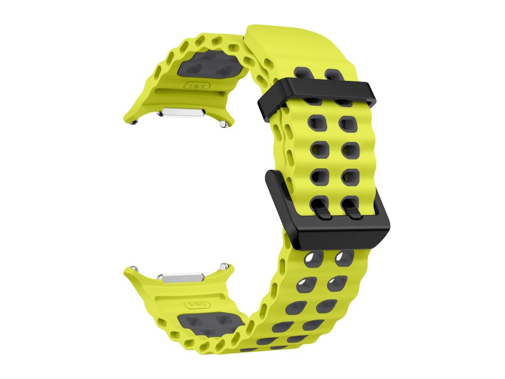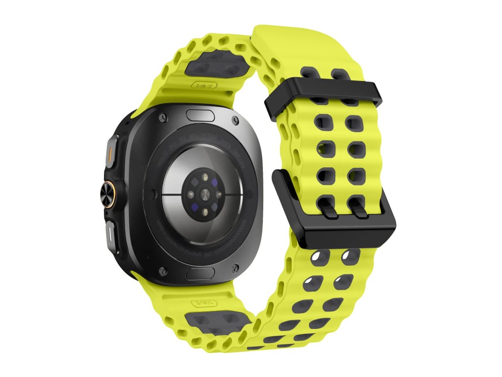 Ocean Loop pro Samsung Galaxy Watch ULTRA (47 mm) je lehký a odolný sportovní řemínek z kvalitního marine silikonu, navržený pro maximální pohodlí při každodenním nošení i náročných outdoorových aktivitách. Prodyšný perforovaný vzor inspirovaný oceánskými vlnami zajišťuje lepší cirkulaci vzduchu, pomáhá odvádět pot a udržuje zápěstí suché i při sportu, běhu, turistice nebo lezení. Měkký, pružný a voděodolný silikon je šetrný k pokožce, bez zápachu a velmi příjemný na nošení. Řemínek je vybaven nastavitelnou nerezovou sponou s bezpečnostním dvojitým jištěním, která zaručuje pevné a spolehlivé zapnutí.