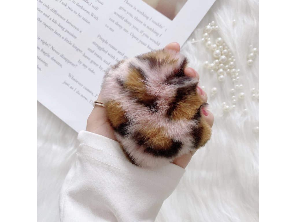 Plyšový leopard - Obal na AirPods 1/2 - Béžovo/růžový